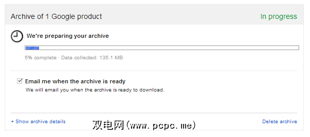 我单击了较大的“创建存档"按钮,然后看到令人鼓舞的进度条,处理我的数据。很快,我将获得一个大的ZIP文件,里面充斥着我多年来的所有照片。