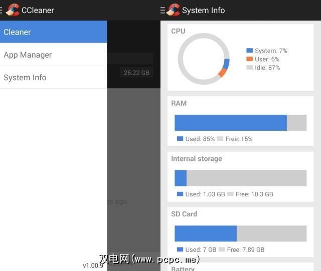 CCleaner for Android包含三个部分:Cleaner,App Manager和系统信息。