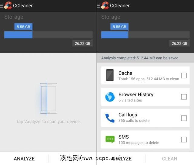 Cleaner是Android最简单的部分,可能会帮助您重新获得一些宝贵的存储空间。在我的测试中,这对于内存有限的手机很有帮助。这个过程非常简单。点击大的“分析"按钮(屏幕图形会告诉您上次运行该按钮),CCleaner会扫描您的系统以查找可以清除或删除的内容。