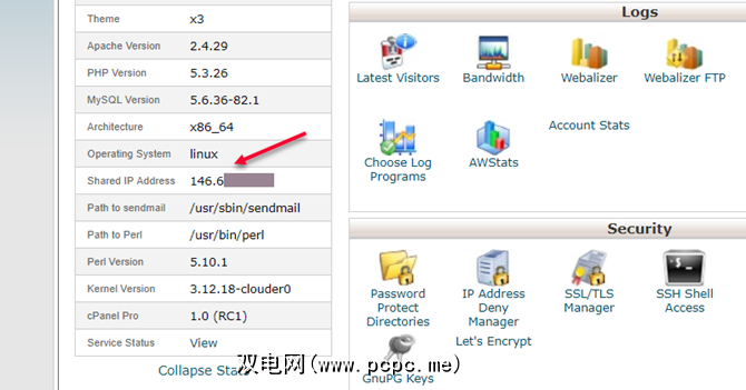 如果主机未提供帐户详细信息页面,通常可以在CPanel的“共享IP地址"或“服务器IP地址"下找到它。