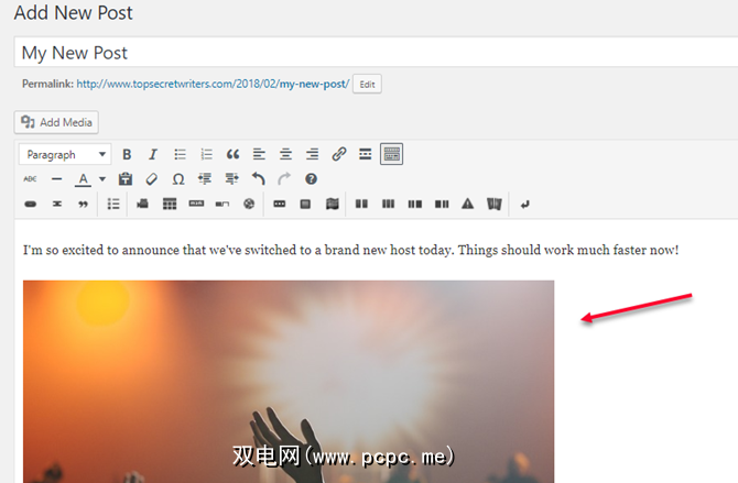 但是,预览或发布此帖子时,这就是帖子中的精选图片和嵌入式图片的外观。
