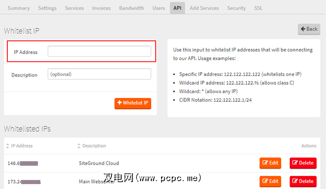 在MaxCDN中,该文件位于 API 子菜单下的帐户菜单下。在您自己的CDN帐户中搜索“列入白名单的IP"以查找列表,或与客户服务部门核对。
