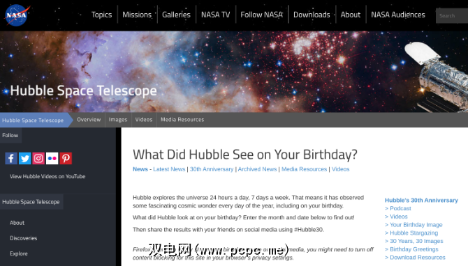 这个NASA官方微型网站可让您找到生日那天宇宙的亮点。您只能按月份和日期进行筛选,而不能按年份进行筛选,这实在太麻烦了。但是,随着网站显示带有彩色照片的银河事件,您会很快忘记该限制。