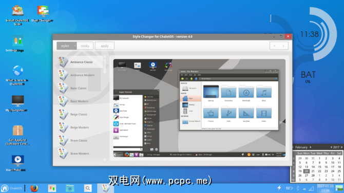 玩这些小工具表明,使用ChaletOS可以节省多少资源。 CPU和RAM的使用情况仍然令人满意。如此之多,以至于我可以将我的Ubuntu 16.04安装换成ChaletOS16。此外,在易于定制的过程中,还有很多选择。与Conky并排的是Style Changer。顾名思义,这是一种改变ChaletOS外观的简单而华丽的方法。从Canonical版式到Windows 7衍生产品,甚至还有Facebook样式,一应俱全。