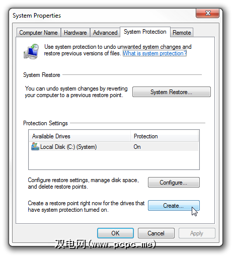 要创建还原点,请在开始菜单中查找“ 创建还原点",然后在打开的窗口中单击“ 创建"。为您的新还原点命名一个您会记住的名称。诸如“ 更改为新的开始按钮之前的"之类的内容将起作用。