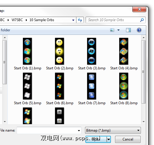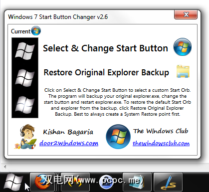 左侧是所选开始按钮的预览,将鼠标悬停在其上方时的外观以及单击时的外观。要更改按钮,请单击右侧的开始球。该程序将自动备份explorer.exe,然后您可以通过单击文件夹图标来还原此备份。