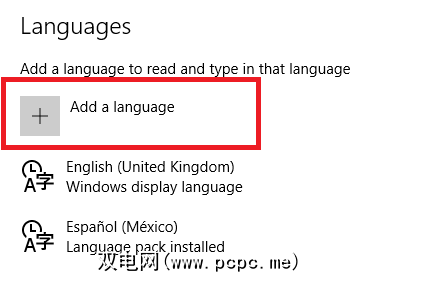 返回到单击开始>设置>时间和语言>区域和语言,进入语言屏幕。
