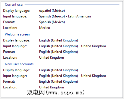 要更改所有全局设置,您需要右键单击开始菜单并转到控制面板>区域>管理>复制设置,然后在欢迎屏幕和系统帐户和新用户帐户旁边打勾。您会看到所有设置都会自动更新。重新启动系统以使更改生效。