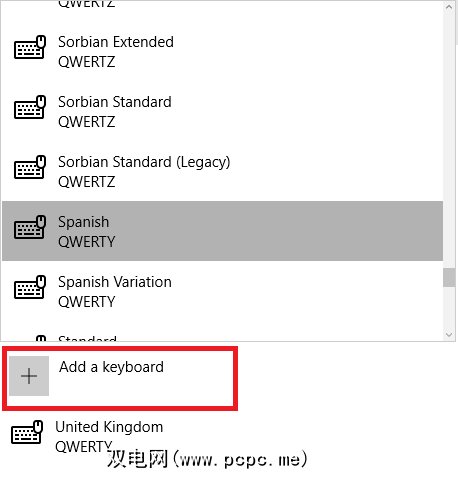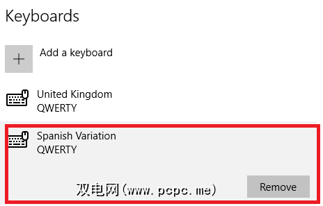 您也可以从此菜单中删除键盘;如果要将系统语言更改为西班牙语,但希望唯一的键盘为英语QUERTY,则很有用。只需突出显示要删除的键盘,然后单击删除。
