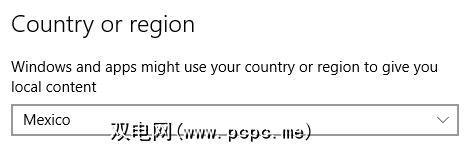 右侧窗格中的第一个选项将允许您更改区域。这对于查找本地化的内容和应用程序很有用。如果您居住在国外,或者a)希望向其展示与您所居住的地方有关的新事物,或者b)希望与您的祖国保持联系,那就太好了。您可以将其设置为所需的任何国家/地区,但请注意,这可能会影响Cortana的功能。