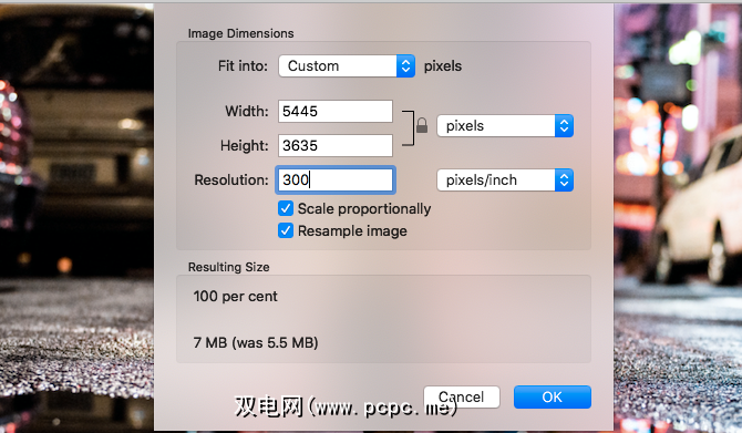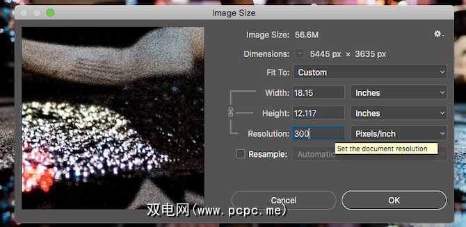 请记住,DPI只是衡量打印分辨率的指标。更改DPI不会更改数字图像的大小或文件的大小。