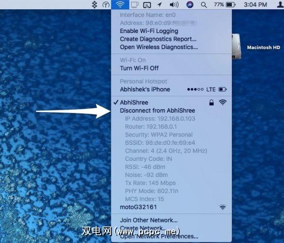 在开始之前,请确保断开任何Wi-Fi网络的连接。为此,请按住 Option 键,然后单击 Wi-Fi菜单栏图标。现在单击从“网络名称"断开连接