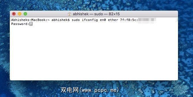 sudo ifconfig en0 ether MAC在这里,用任何现有的MAC地址替换“ MAC"或上面生成的随机MAC地址。