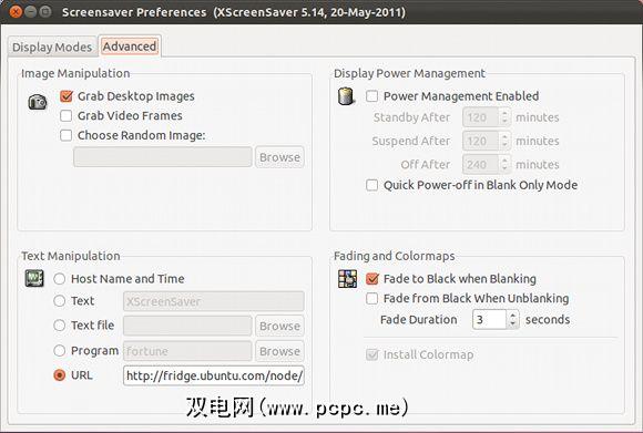 完成后,您可以继续启动XScreenSaver(在Unity Dash中搜索XScreenSaver时显示为“ Screensaver")。 。首次打开配置窗口时,会警告您GNOME屏幕保护程序守护程序仍在运行,应该停止它。继续操作,然后允许XScreenSaver守护程序在当前显示器上运行。