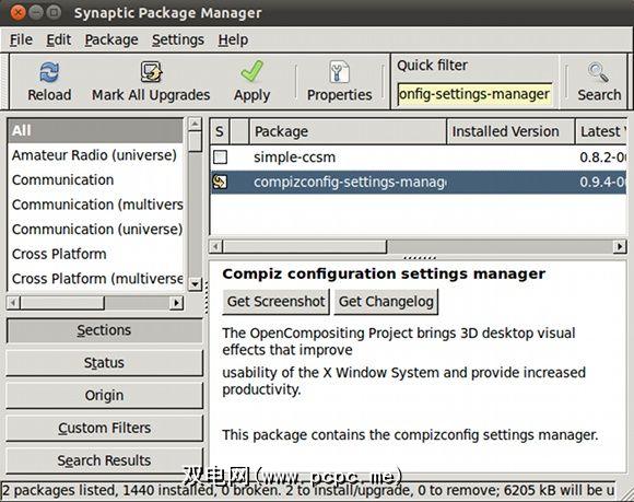 由于Unity实际上是Compiz Window Manager的扩展,因此您可以在CompizConfig设置管理器中找到Unity插件。但是,默认情况下,当前未安装。为便于安装,只需单击此处。该链接将提示软件包管理器为您安装软件包。您也可以启动Synaptic软件包管理器,然后输入