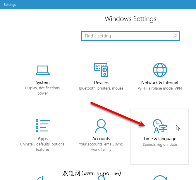 更改系统语言在Windows 10中很简单。如果您不懂当前的语言,请按照以下屏幕截图进行操作。否则,您可以按照以下简短步骤列表进行操作: