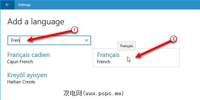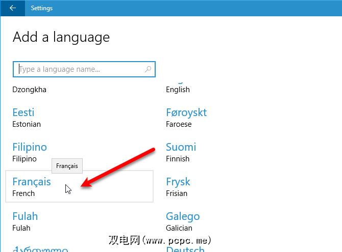 您也可以使用窗口顶部的搜索框来搜索所需的语言。输入语言名称,然后单击所需的结果。