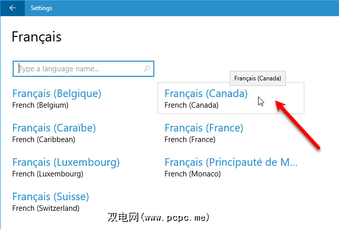 某些语言在多个国家/地区使用,但每个国家/地区略有不同。在这种情况下,您会看到另一个带有其他选择的屏幕。单击所需国家/地区的语言。