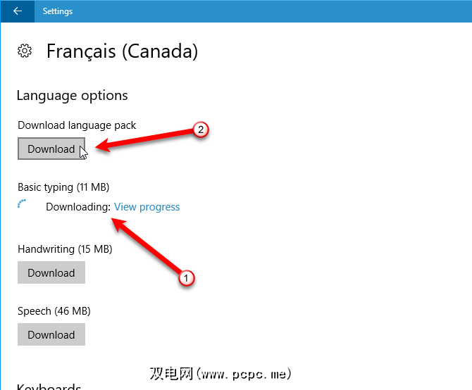 在Windows Update中找到该语言包后,您将在< strong>下载语言包。单击按钮下载并安装所需的语言包。如果未安装语言包,则无法使用该语言。