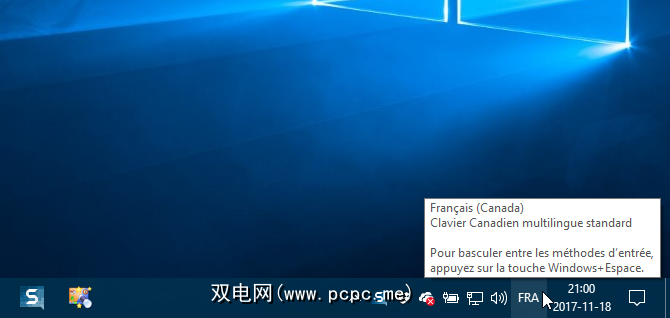 地区和语言屏幕上列出了多种语言时,当前默认语言显示在任务栏的右侧,然后单击“下一步"。到日期和时间。当您将鼠标移到语言指示器上时,您会看到以该语言显示的弹出窗口。