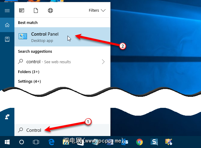 在任务栏上的搜索框中键入“ 控件"。然后,在最匹配下单击控制面板。