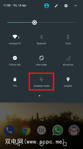 您的手机进入飞行模式,只需用两根手指在通知栏上向下滑动,然后点击飞行模式图标。