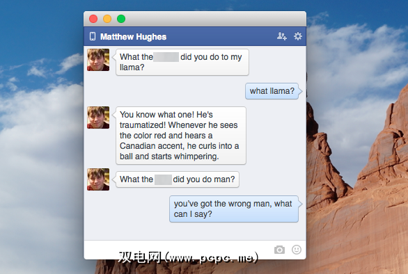 对我来说,这是Current的杀手feature。如果某些功能可以在Facebook聊天中使用,则可以在此处使用,但是您无需打开Facebook标签即可查看。这意味着您可以继续进行对话,而不会迷失在作为时间表的致命时间戳中。