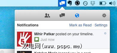 Facebook不仅要滚动浏览内容,还要与朋友互动。通知使此过程变得更容易,因为有了它们,您就可以知道有人在与您聊天。 Current使Facebook的通知更易于访问-只需单击菜单栏图标。