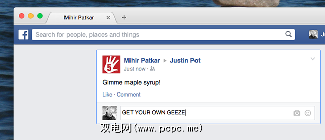 您将在此处看到完整的通知列表,与它们在Facebook中的显示完全相同。这很有用,因为Facebook的OS X集成不包括某些通知(最明显的是页面通知)。