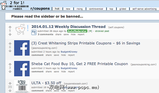 WeUseCoupons 。该小组链接到同名博客,拥有超过100,000个顶。它每天链接到各种优惠券。