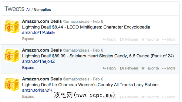 每天都想链接到您的Twitter feed中的交易吗?我将从 @AmazonDeals 开始。该官方帐户指出了网络上最大的零售商出售的所有商品。