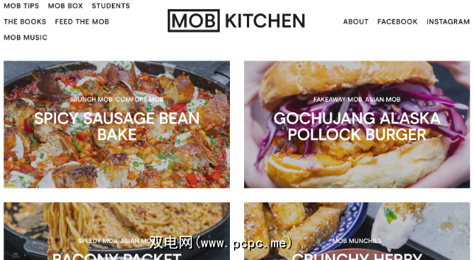 该网站上没有大量的食谱,但是可用的选项多种多样,听起来很美味。确保您还查看了Mob Kitchen学生黑客电子书,了解任何初学者的提示和技巧。