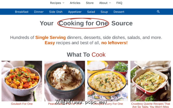 5。一个菜式的厨房(网络):一个人做饭的食谱