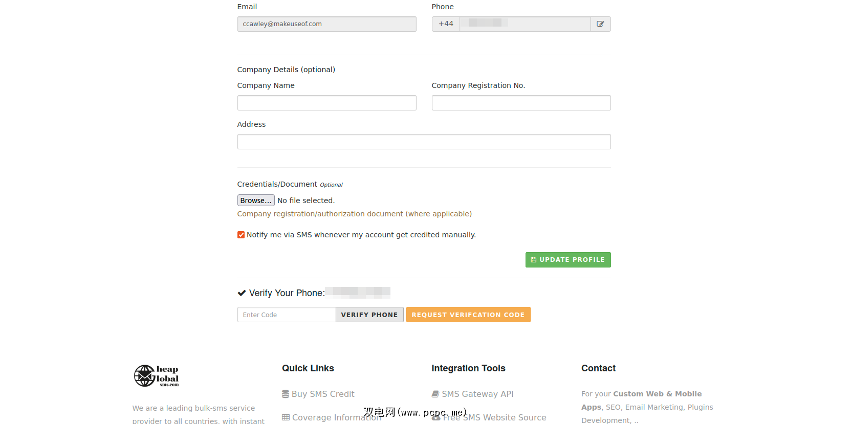 接下来,它会提示您更新您的个人资料。这包括设置您的祖国并输入您的时区和电话??号码。单击更新个人资料 后,您可以(可选)请求 SMS 验证码来验证您的手机。