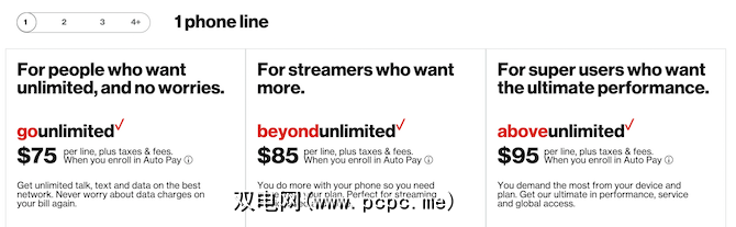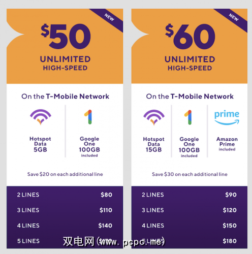 T-Mobile可能会在网络出现拥塞时暂时降低数据速度。 50GB阈值。上面的价格基于注册自动转账的5美元折扣,但其中确实包括税费,因此您的账单上没有其他意外。