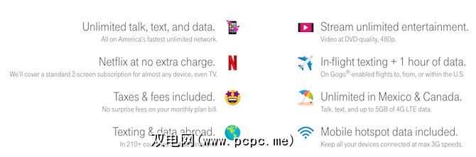 除了娱乐选项之外,您还可以向120多个国家/地区发送无限制的文本,在墨西哥和加拿大也可以进行无限制的通话和漫游。