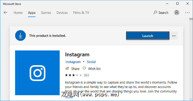要下载该应用,请打开Microsoft商店并搜索 Instagram 。点击列表中的第一个应用,然后点击获取。将会显示一条消息,说明您拥有该应用程序,然后它将自动下载。完成后,点击启动。