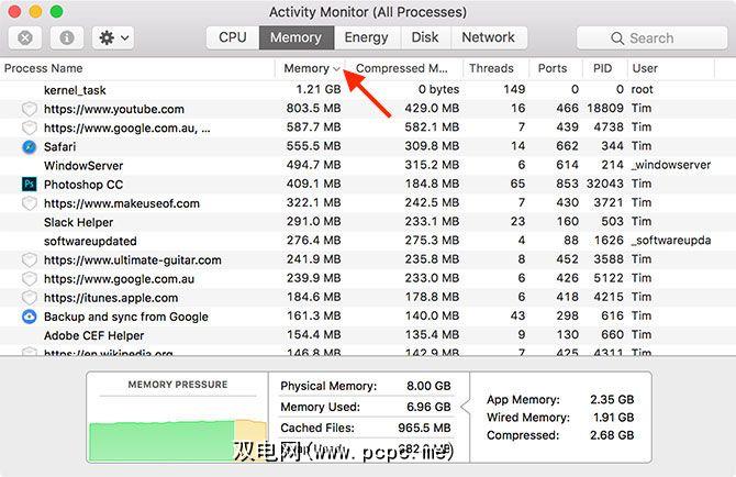 启动活动监视器,然后单击内存标签。按降序对内存列进行排序(它将显示一个向下的箭头),以查看顶部使用最多内存的进程。如果看到“ kernel_task"使用了大量内存,则表示操作系统在后台运行。