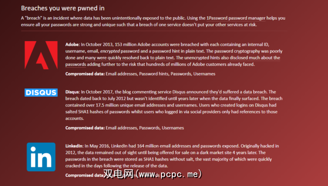 如果您的电子邮件地址与数据泄露相关,则网站会指定泄露日期,受影响的服务或公司以及有关的详细信息