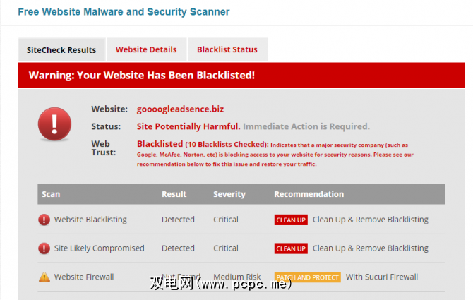 您可以使用免费的域恶意软件扫描工具Sucuri SiteCheck来检查自己的网站是否存在恶意软件。 Sucuri在域地址中搜索任何已知的恶意软件,其黑名单状态,网站错误以及任何过时的软件。