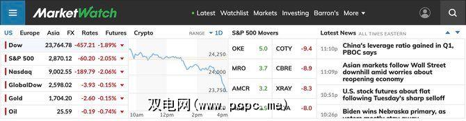MarketWatch是一个综合的网站,可为投资者提供大量信息。您可以看到许多部门的实时股票价格,包括汇率,期货和加密货币。