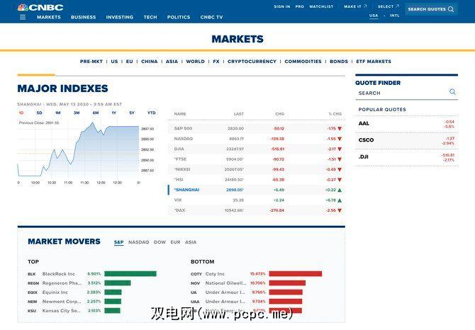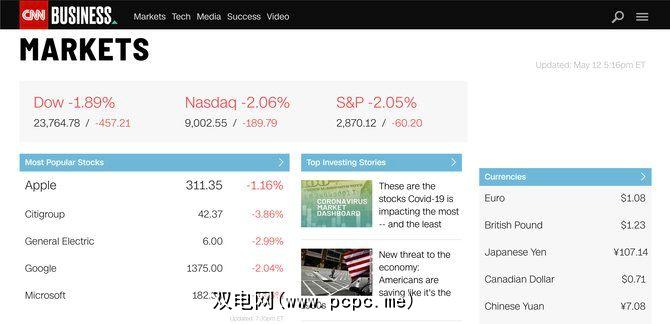 CNN Markets布局整洁,可以轻松访问股票信息。您会获得有关道琼斯指数和纳斯达克指数,趋势股票,世界市场,货币和商品等指数的刷新信息。如果您想了解新闻,可以在首页上找到热门新闻。