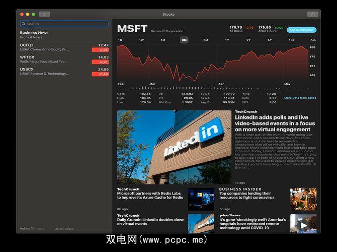 Apples Stocks是适用于macOS和iOS的简单股票查看器。您可以查看Apple的商业新闻并搜索股票。它不像其他应用程序那样具有聚合功能,您必须知道要查找的股票。