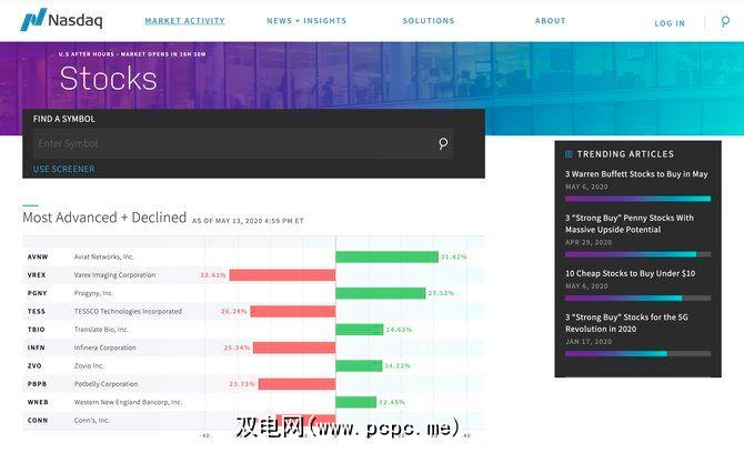 NASDAQ不仅是证券交易所,它具有用于检查股票价格的综合Web应用程序。您会发现股票信息,指数,商品,期货和加密货币汇率。主页屏幕上包含一些全面的信息,例如全球市场活动和活跃的股票。