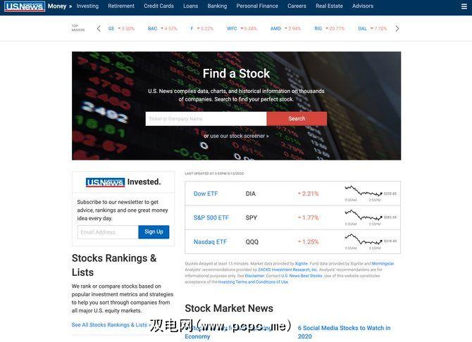 《美国新闻》是其股票检查器和个人理财部门的绝佳选择。您可以阅读有关自己喜欢的股票的最新消息,查看高绩效股票并关注不同的股票领域。