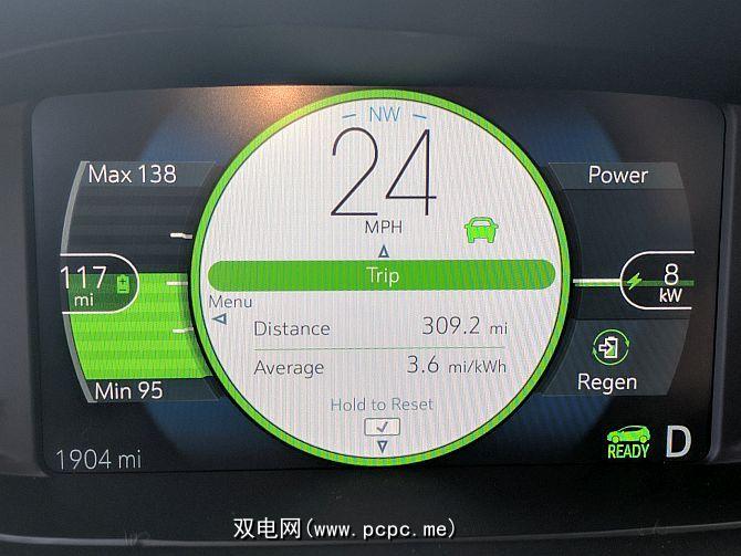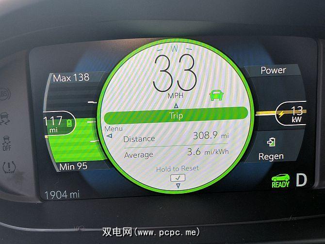 收费级别显示在仪表盘的左侧,是各种“电量"表的指示器。中心号码为您提供了电池组中当前电量后可以行驶多远的平均估计。显示屏还会显示“最大"和“最小"。这些是根据您是保守驾驶还是激进驾驶而得出的行驶里程估计值。