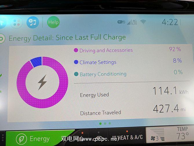 还有一个“能源详细信息"摘要页面,该页面提供了饼状图中列出的相同信息。这显示了自上次为汽车充电以来的所有能量消耗,其中包括驾驶因素,车内气候控制设置和电池调节功能。