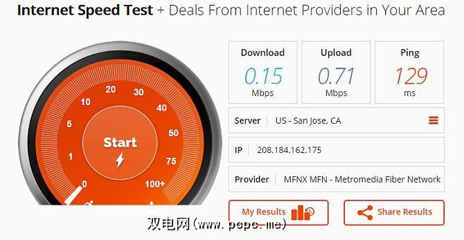实际上当我去第二个测试站点进行带宽测试时,页面加载速度太慢,以至于我以为是1999年。