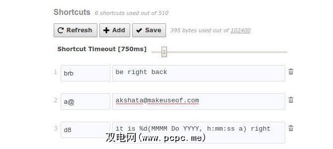在安装扩展程序并将其启用后,您会看到它为您设置了一些默认快捷方式。随意添加更多自己的。不要忘记通过将其导出到安全位置来备份它们!如果您丢失了因浏览器崩溃或其他任何数字灾难而自定义的快捷方式集合,这将为您省去很多麻烦。