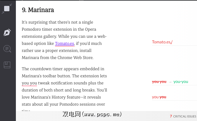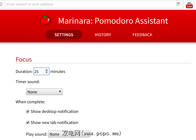 令人惊讶的是,Opera扩展程序库中没有单个Pomodoro计时器扩展程序。虽然您可以使用Tomato.es等基于Web的选项来使用Pomodoro技术,但如果您更想使用适当的扩展名,请从Chrome网上应用店安装Marinara。其倒数计时器显示在Marinara的工具栏按钮中。